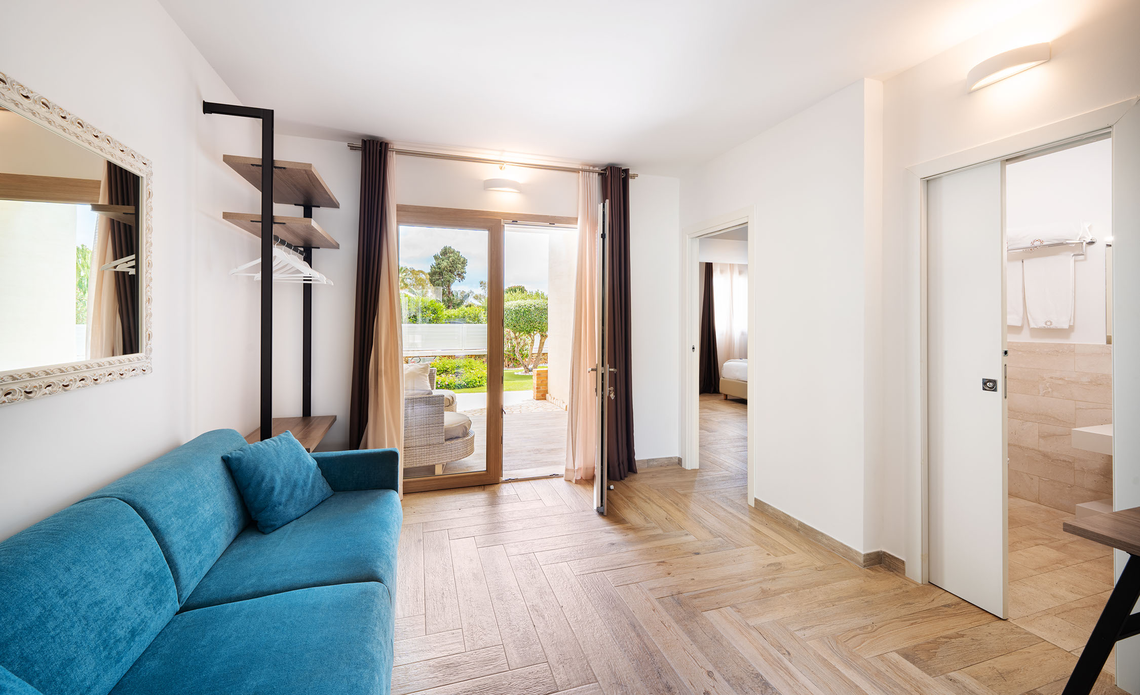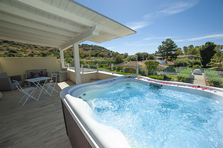 It features a Jacuzzi on the room's terrace for exclusive use.