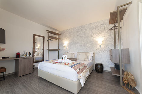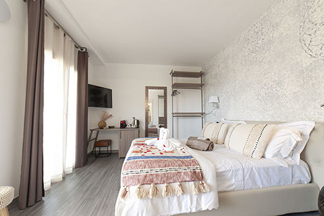 Situata al primo piano della zona Boutique, dotata di balcone privato è attrezzato con aree relax (tavolino, sedie e salottino)